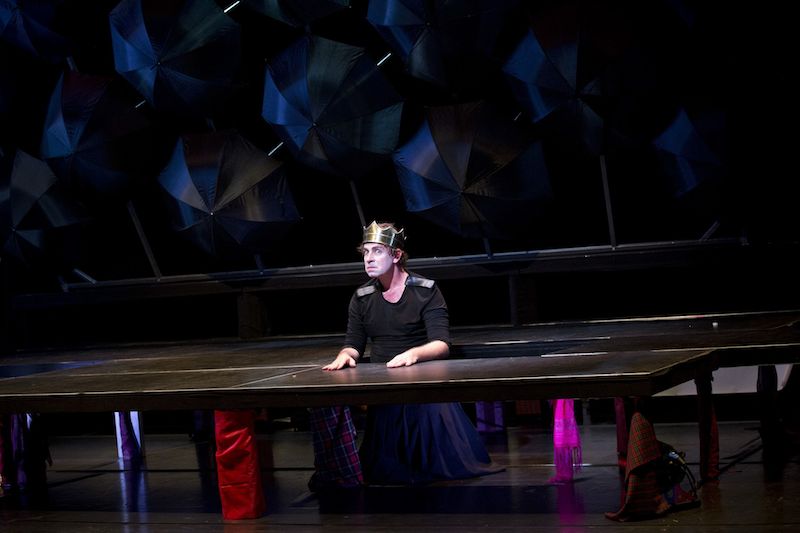setzt sie mit "MacbeTh-ree" jetzt noch eins drauf. (...) Das Bühnenbild (Johanna Deffner) ist so einfach wie genial: